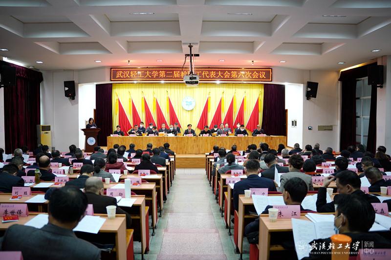 本网讯 春风浩荡征途新,战鼓铮铮催人进。2月22日上午,武汉轻工大学第二届教职工代表大会第六次会议在常青校区科学报告厅隆重举行。受校党委书记、大会主席团召集人王立兵委托,学校三级职员、工会主席刘丰林主持大会开幕式。校党委副书记、校长董仕节代表学校作题为《乘势而上奋发再为全力以赴夺取决战申博攻坚的新胜利》的工作报告。教代会正式代表127人出席会议,部分老领导、特邀代表和列席代表列席会议。