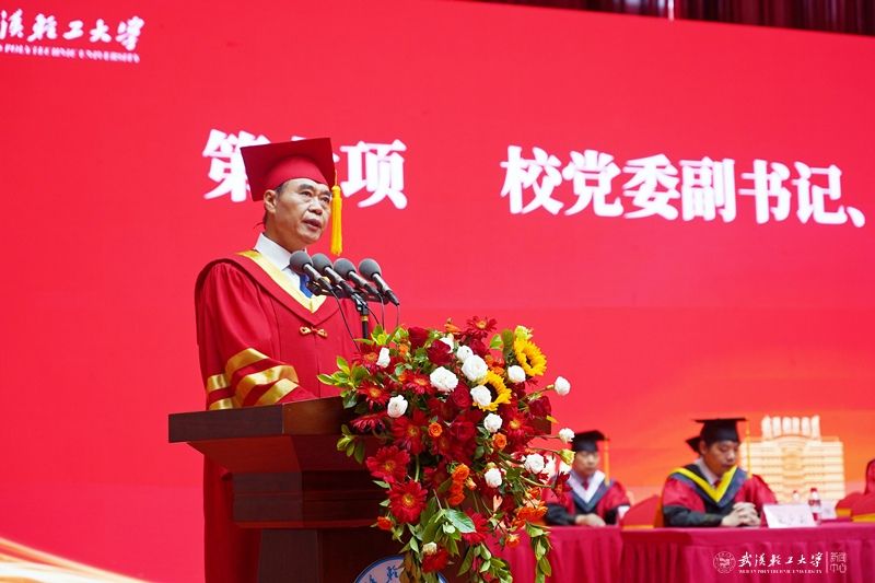 董仕节为各学院毕业生代表颁发了毕业证书、授予学士学位,并以“追光,绽放生命的精彩”为题作毕业寄语。董仕节深情回顾了与2025届毕业生共同度过的四年珍贵时光,留下的“专属印记”。他说,四年追光,同学们用奋斗与坚持书写了属于轻工大的光辉篇章,已然成为轻工大最耀眼的“光源”。董仕节以师长的身份寄语全体毕业生:一是要学会追时代之光,击打“奔涌而有方向”的浪花。心怀“国之大者”,在时代洪流中找准航向,牢记“明德 积学 砺志 笃行”的校训,用所学破解现实难题,以行动回应民生所需,激起属于自己的澎湃声响。二是要学会追学习之光,点燃“炽热而不熄灭”的火焰。在AI重塑世界的时代,保持“空杯心态”持续充电,不惧困难、不怕迟缓,每天进步一点点,奔赴属于自己的灿烂。三是要学会追进步之光,长成“根深而枝叶茂”的大树。用“归零心态”拥抱新知,专注执着,日拱一卒,聚沙成塔,用脚踏实地的坚持和点滴积累实现人生的跃迁,追求属于自己的高光时刻。四是要学会追幸福之光,绽放“温暖且有力量”的光芒。葆有对生命的善意和温度,做合作共赢的同行者,做公平正义的守护者,做爱与责任的担当者,在利他与自洽中抵达幸福彼岸。