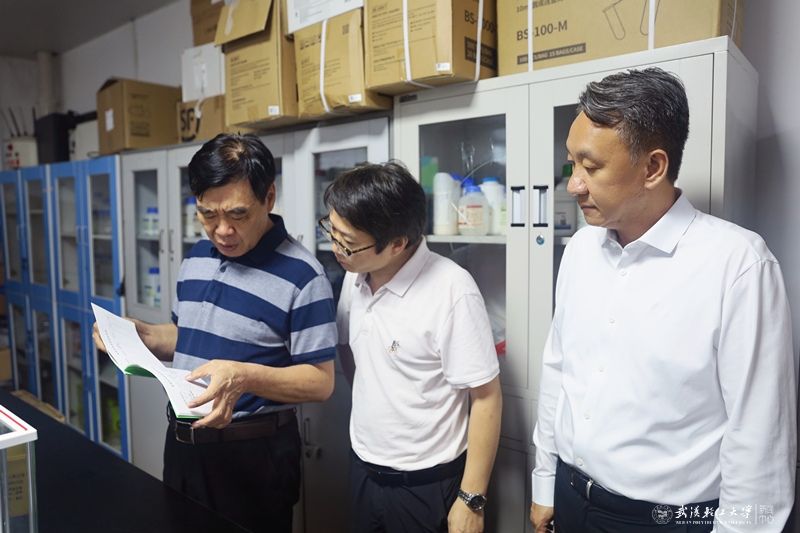 在常青校区和金银湖校区,严冀钢一行先后实地察看了动科学院实验室、东校区12号学生宿舍、禾园6舍、梅花餐厅、银湖餐厅等关键区域,对实验教学、实验室危化品存放、学生宿舍、食品安全、值班值守等重点领域进行了检查,通过现场走访、台账检查、听取汇报等形式,仔细排查校园安全隐患。