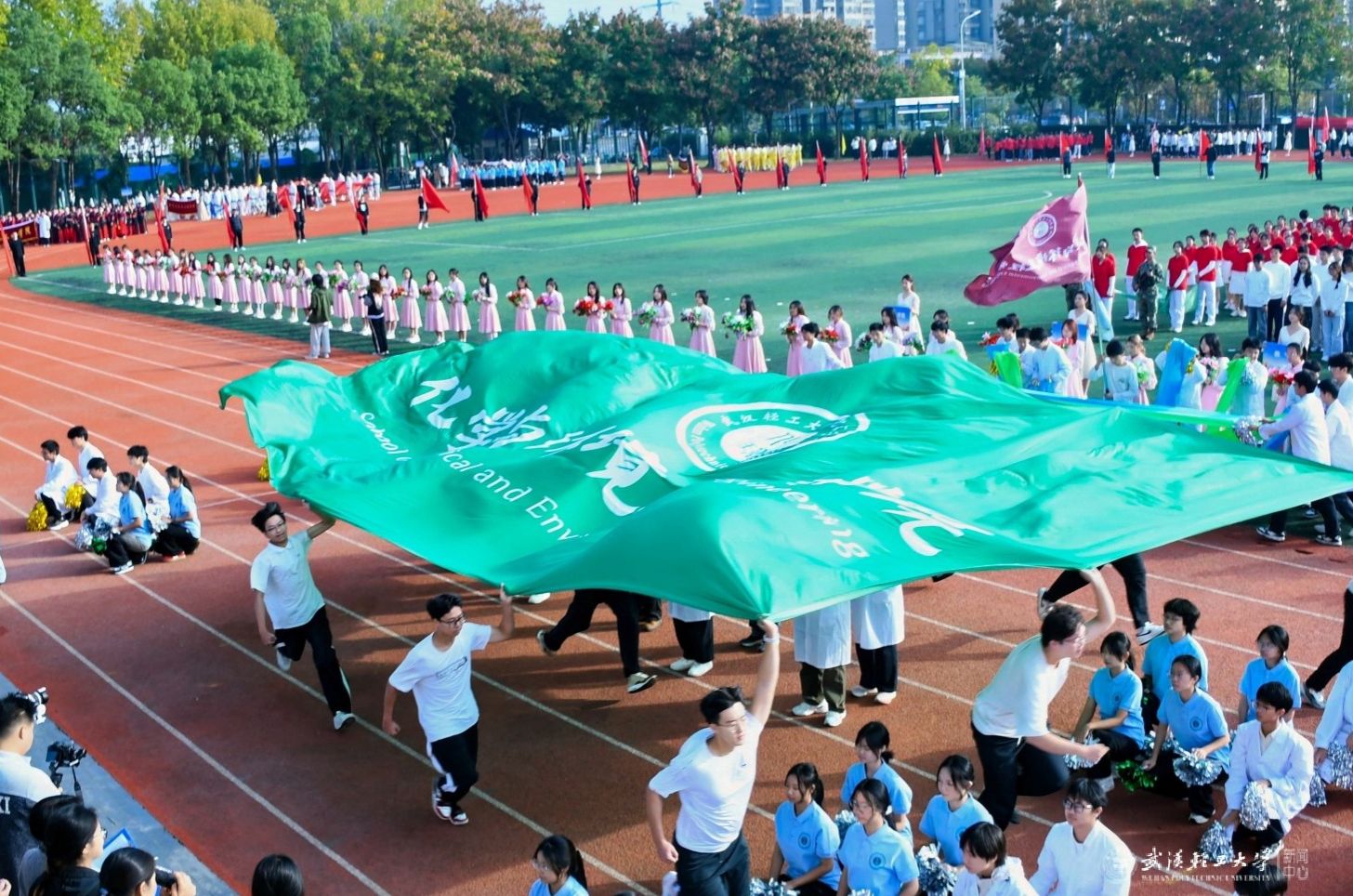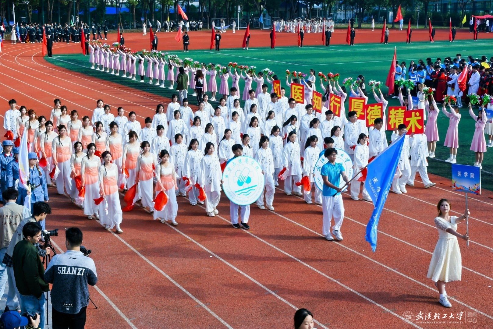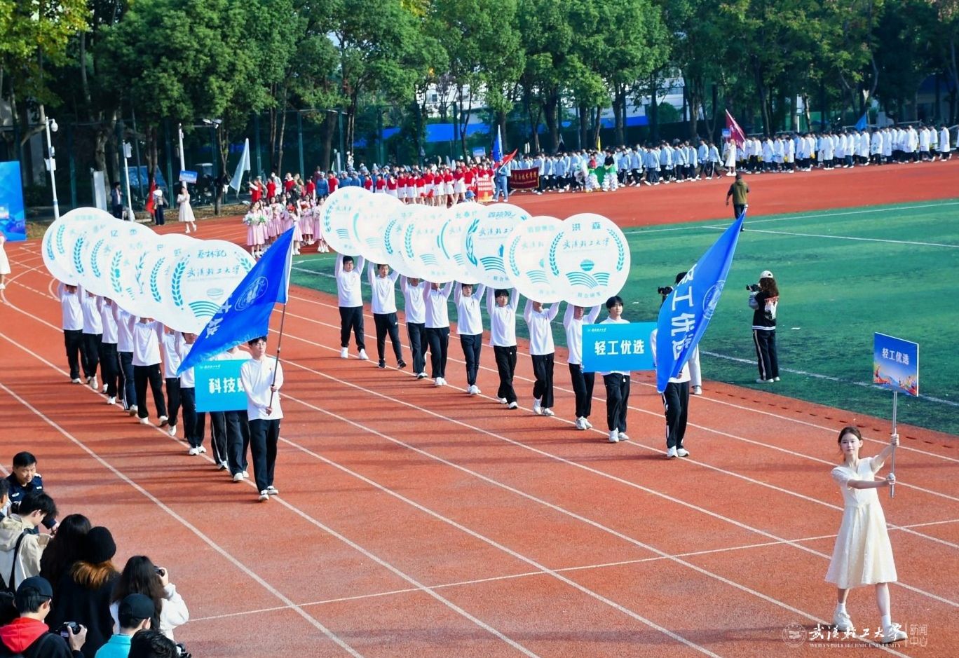 入场式上,伴随着慷慨激昂的《运动员进行曲》,23个方队精神抖擞、意气风发地依次走过主席台。“轻工优选”方队高擎16家校企联名标识,彰显学校聚焦“大食品大营养大健康”领域,做大做强“轻工优选”行业品牌集群的决心;食品学院方队以跨越时空的表演,诠释践行“民以食为天”的使命,把论文写在祖国大地上,把成果送进千家万户的担当;化环学院方队手持蓝绿绸带,展现探索科学奥秘,践行“绿水青山就是金山银山”的生态追求;动科学院方队舞动传统响扇,刚柔并济,展现秉承“农工相融、笃学致用”的理念、再谱新篇的昂扬风貌;电气学院方队人形机器人和机器狗科技助阵,生动演绎从电力工程到智能控制的创新图景;土建学院方队以钢筋般的挺拔身姿,融合严谨与活力,诠释“厚土承德,菁木建华”的青春誓言;医学院方队白衣执志、步履从容,彰显传承红医精神、护佑人民健康的崇高理想;硒产业学院将“永远跟党走”刻进青春坐标,展现扎根硒产业沃土,服务乡村振兴的坚定信念。