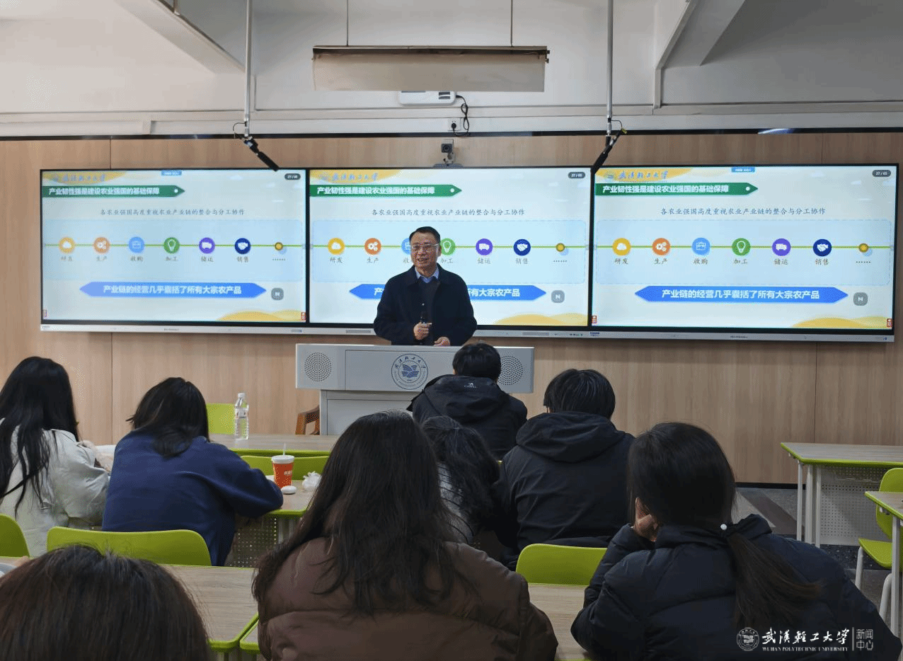 11月30日上午,校党委常委、副校长侯永清在经济学院2025级学生课堂,以“阔步迈向农业强国”为主题讲授形势与政策课。侯永清以“中国现在是农业国还是工业国”作为课堂导入,从为什么要加快建设农业强国、建设什么样的农业强国、怎样建设农业强国,逐步启发学生对迈向农业强国的思考,增强了同学们对昂首阔步迈向农业强国的信心和底气。