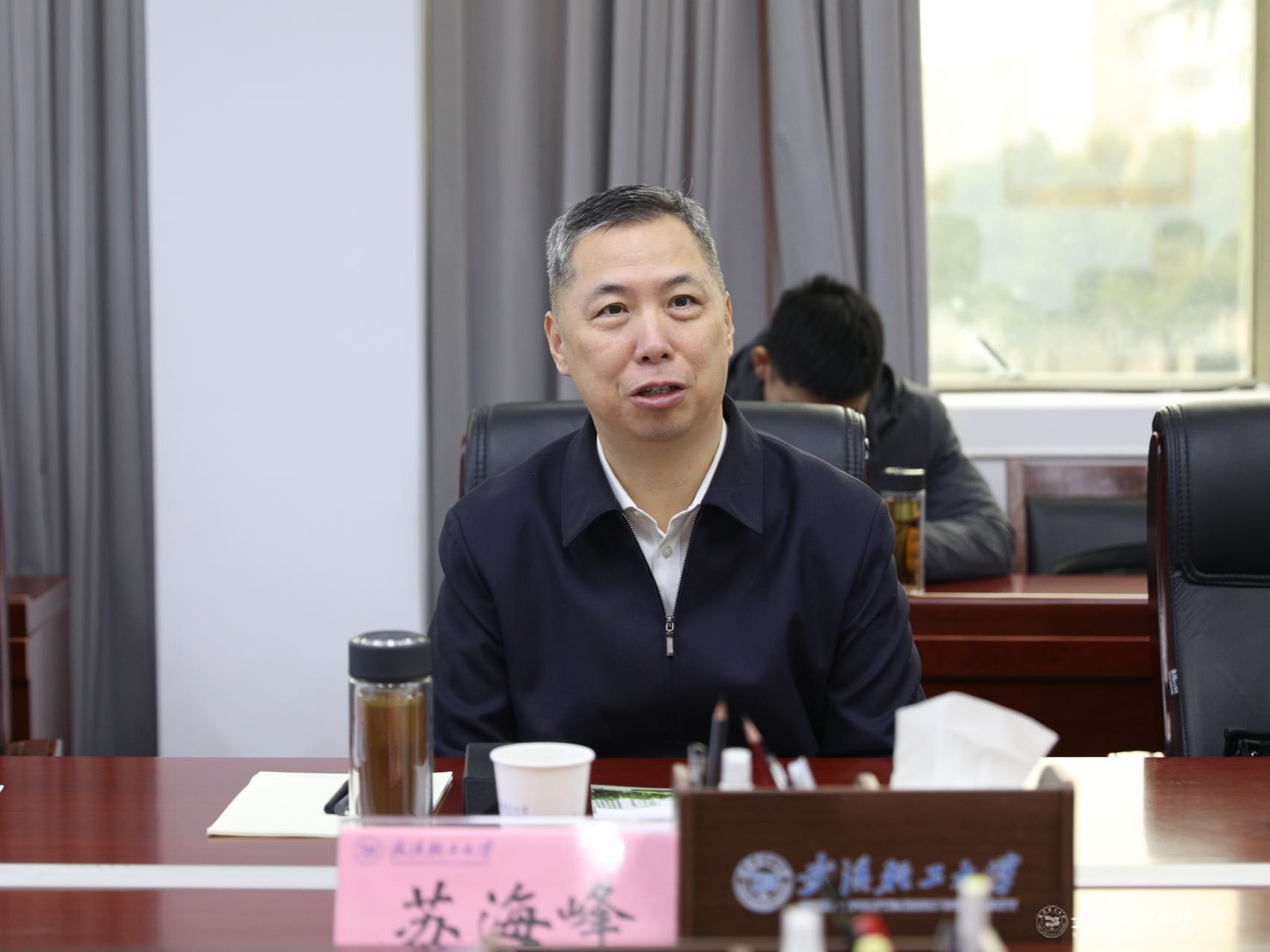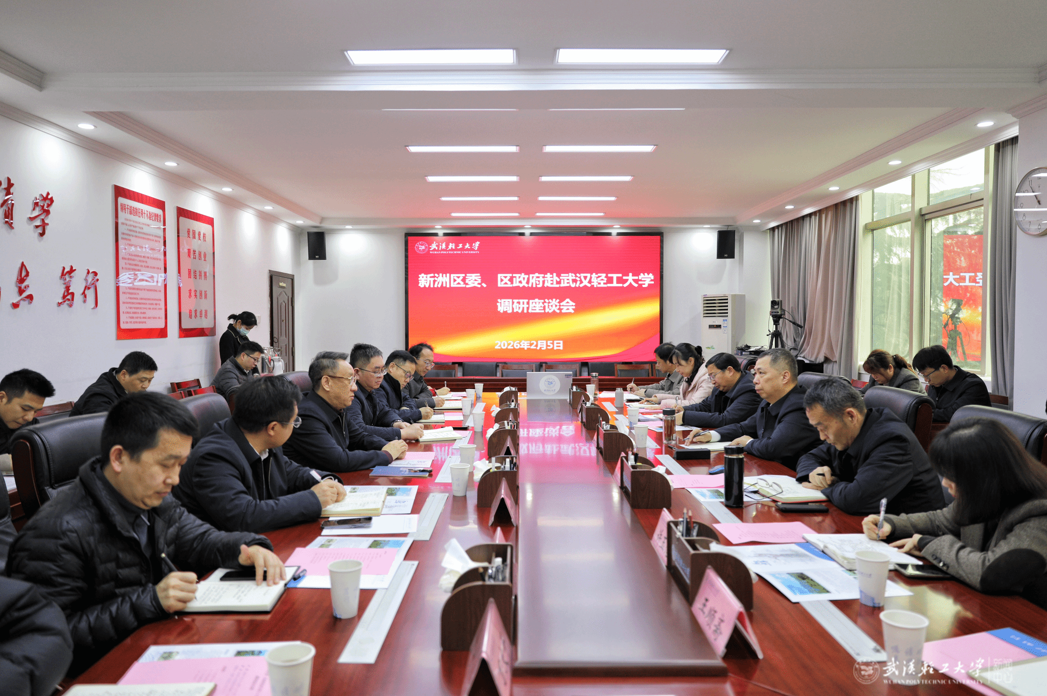 本网讯 2月5日上午,武汉市新洲区委书记苏海峰一行来校调研座谈。校党委书记严冀钢主持座谈会。校长汪海波、副校长丁华峰出席会议。