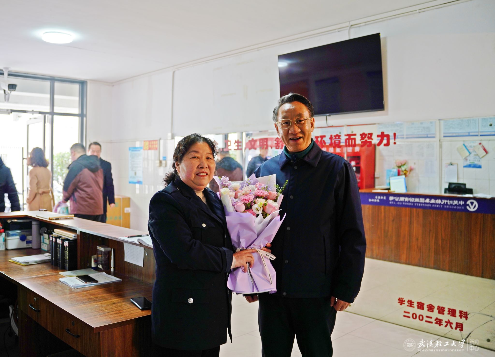 本网讯 春和景暖,芳华竞展。在第116个“三八”国际劳动妇女节来临之际,3月5日上午,校党委书记严冀钢、校长汪海波及校党委副书记、副校长金艳分别带队深入常青、金银湖两校区,看望奋战在教学科研、管理服务一线的女教职工代表,为她们送上满载敬意的鲜花,并向全体女教职工致以节日问候,传递学校党委和行政的关怀与温暖。