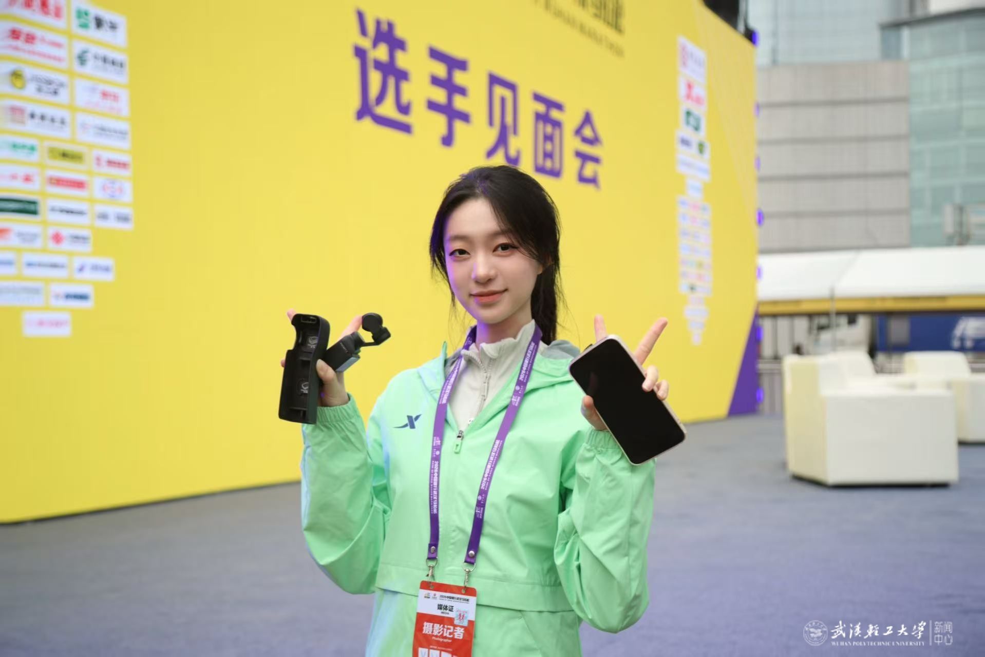 本网讯 3月22日,2026武汉马拉松在江城武汉热血开跑,全球目光聚焦这座充满活力的城市。在42名身着青草绿制服、肩负赛事报道使命的大学生记者中,我校文传学院24级广告学专业本科生赵明远是其中唯一的轻工大身影。