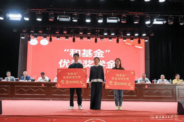 学院副院长孙亮波、王旺平及院长助理阳学进宣读校院两级学生工作表彰文件。“和基金”理事会理事长滕红华为“和基金”获奖学生代表颁奖;深圳市易佰网络科技有限公司运营总监、2003级包装工程校友李金强为“易佰网络”励志奖学金获奖学生代表颁奖;武汉澳华农牧科技有限公司内务厂长赵瑜为“澳华”优秀学生奖学金获奖学生代表颁奖;武汉玉环商会秘书长、武汉日和汽车零部件有限公司董事长金启敏为“玉环杯”优秀学风建设奖获奖集体和个人代表颁奖;武汉市无界环球文化传播有限公司华中区总经理彭师为“无界外语”未来之星奖学金获奖学生代表颁奖;世纪文都教育科技集团股份有限公司汉口分校校长章涛为“文都杯”校友之光奖学金获奖学生代表颁奖;广州致中和教育科技集团武汉地区召集人孙蕾为“致中和”学生社会实践奖学金获奖学生代表颁奖。