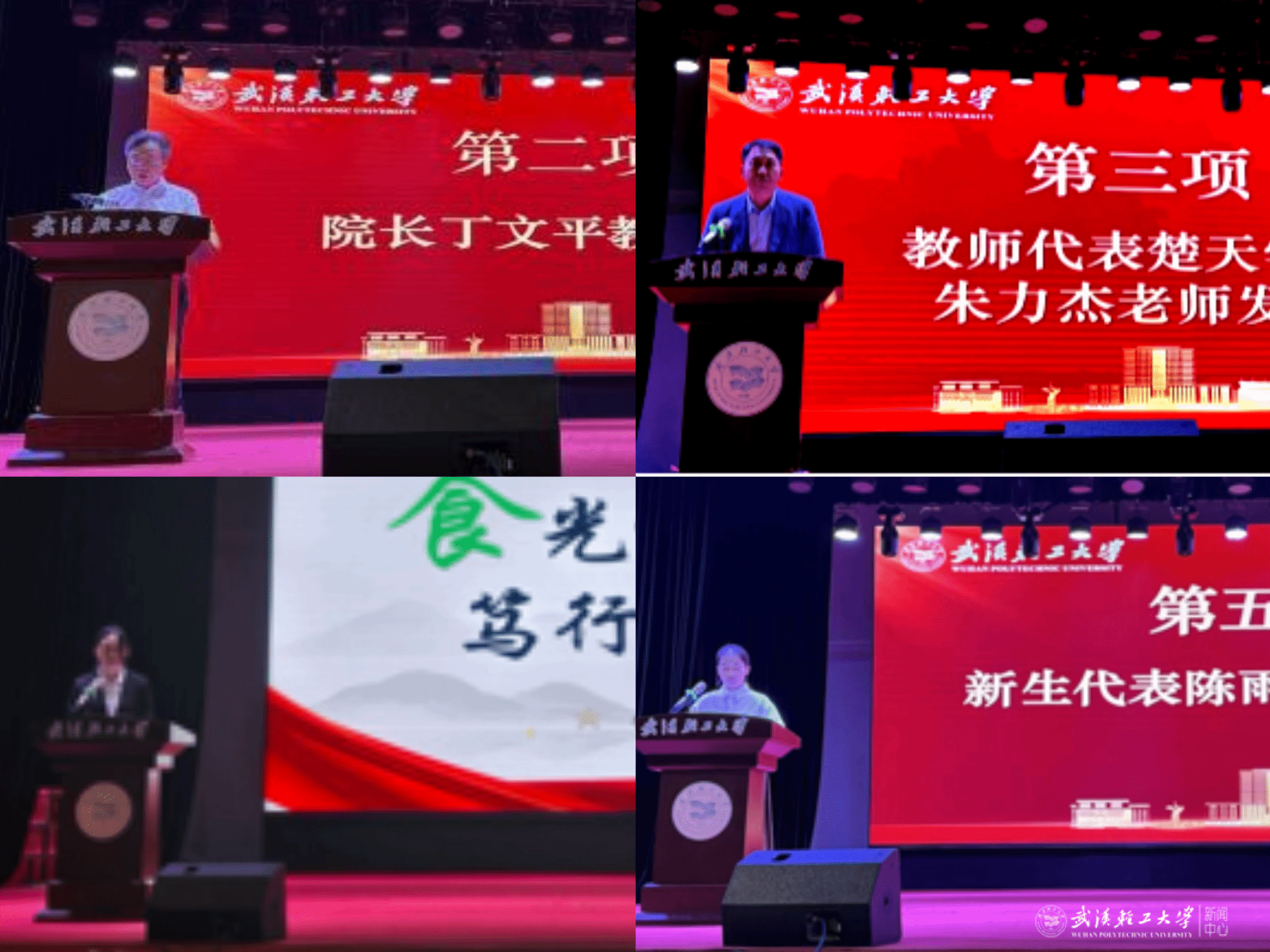 湖北省“青马工程”学员王思博作为老生代表发言。她从“学习、机遇、实践、选择”四个关键词切入,分享了自己的成长感悟,并呼吁新生勇于走出舒适区,在面对多元选择时学会取舍、坚定方向。新生代表陈雨欣以校训中的“砺志、笃行”自勉,表达了在食品学院这片沃土上勤学笃行、成长为“食品追梦人”的美好愿景。