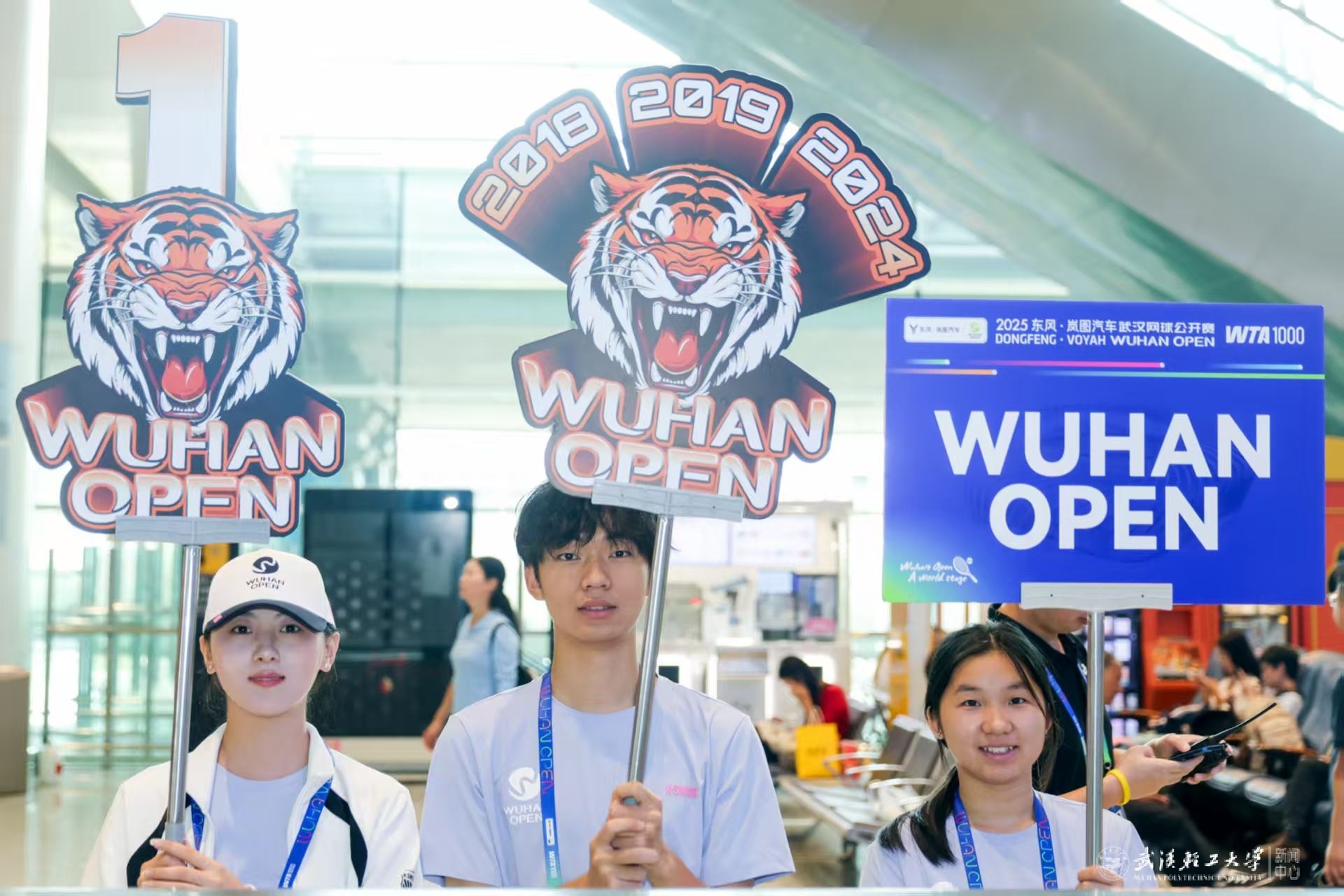 本网讯 金秋十月,星光汇聚江城,2025武汉网球公开赛(以下简称“武网”)如期启幕。我校精心选派20名学生志愿者,化身“机场接待助理”,驻守赛事服务前沿,以专业的服务、饱满的热情和温暖的态度,圆满完成了为期九天的抵离港接待任务,成为武网赛场外一道亮丽的青春风景线。