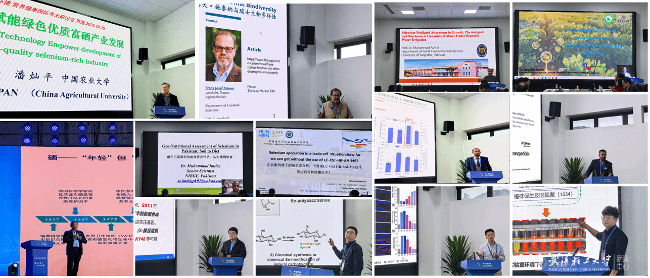 中欧生命科学联盟、瑞士苏黎世中国中草药与功能食品创新中心高级顾问、高级农艺师Franz Josef Steiner,俄罗斯工程院院士、中国农业大学领军教授潘灿平,匈牙利科学院农业研究中心高级研究员Mihaly Dernovics,阿根廷国家科学与技术研究委员会研究员Fernando Muñoz,巴基斯坦萨戈达大学教授Muhammad Ashraf,巴基斯坦国家生物技术与基因工程研究所高级科学家Muhammad Imtiaz,长江大学教授许锋,西北师范大学教授王俊龙,恩施德源硒材料工程科技有限公司研究员丛欣,武汉轻工大学硒科学与工程现代产业学院博士何志军,长江大学园艺园林学院博士后高尚,华中农业大学资源与环境学院博士生Khurram Shehzad与园艺林学学院博士生Hafiz Muhammad Kashif分别围绕生物多样性保护植物带的建设、富硒产业的发展路径、食品与植物样品中硒的形态分析技术、饲草有机硒生物可给性的优化策略、硒对植物盐胁迫的调控、膳食硒的地球化学特征与营养安全评价、植物聚硒调控机理及产业未来展望、植物硒蛋白的活性优势与国际竞争力、多糖硒的功能化开发、硒调节肠道炎症的作用机制、富硒控镉微生物的挖掘,以及硒在土壤复垦与生物修复中的应用作主题汇报。