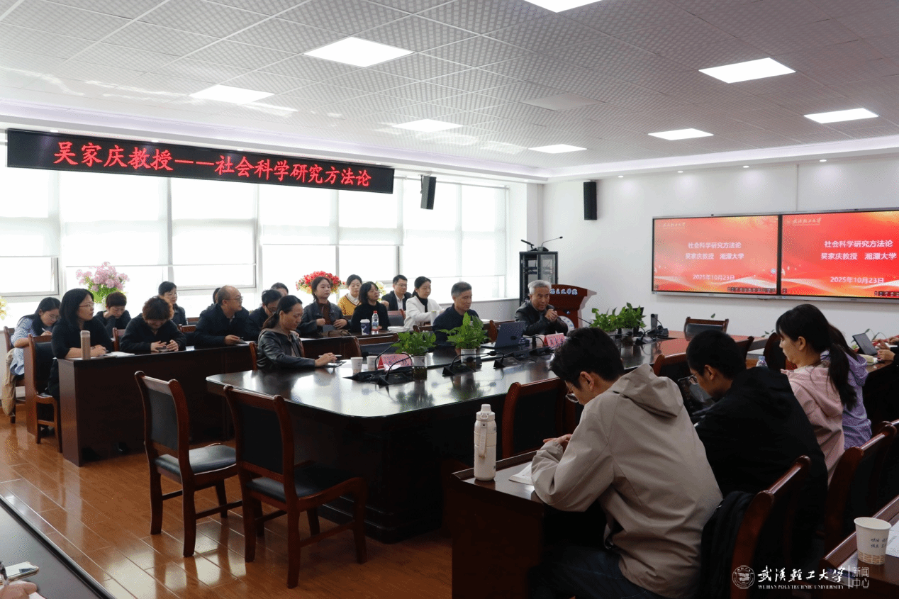 本网讯 10月23日下午,马克思主义学院“社会科学研究方法论”专题讲座顺利举办。活动特邀湘潭大学马克思主义学院吴家庆教授主讲,学校党委副书记、副校长金艳出席,学院全体教师参会聆听、交流学习。