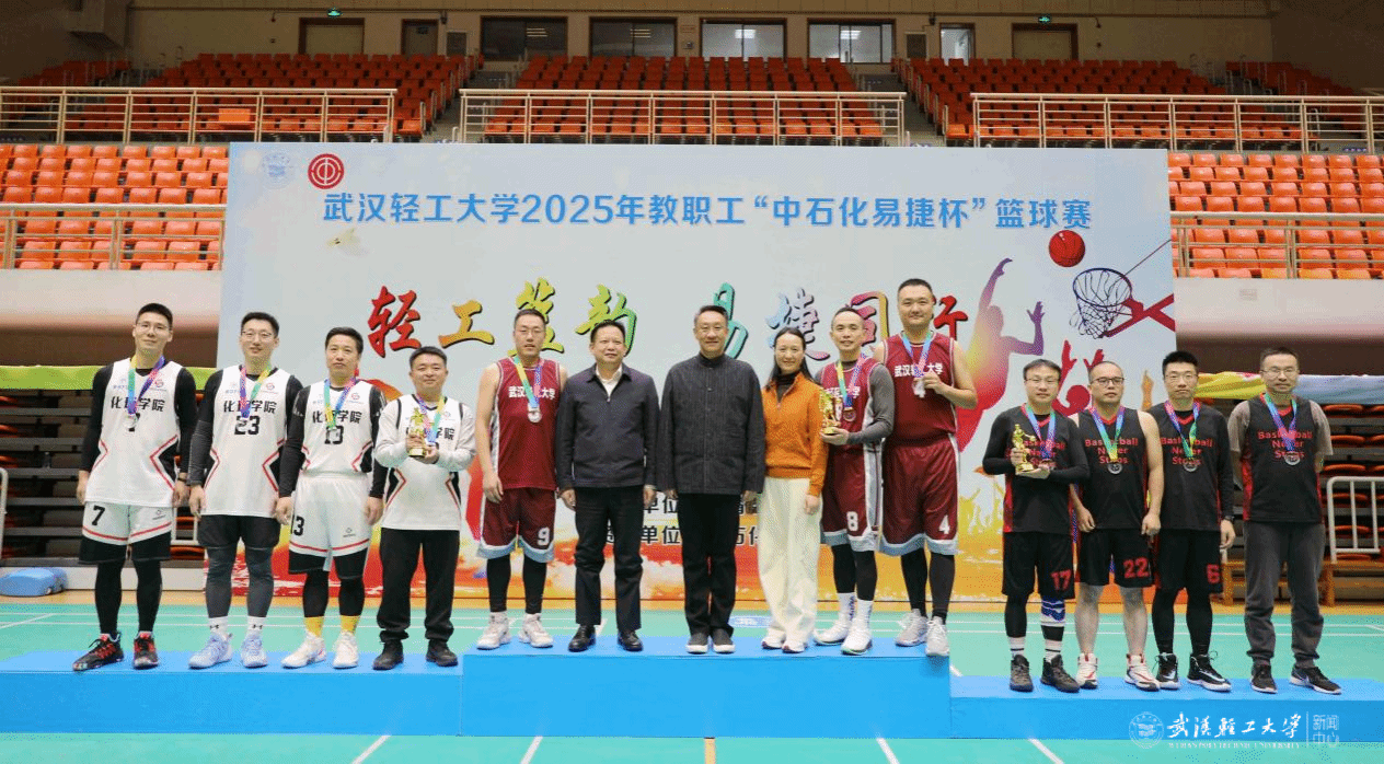 本网讯 全国第十五届运动会举办之际,11月20日下午,学校2025年“中石化易捷杯”教职工篮球赛决赛在金银湖校区恒青体育馆顺利举行。校党委书记严冀钢,党委副书记、副校长金艳,中国石化湖北石油分公司党委委员、副总经理张军,以及双方相关单位负责人出席颁奖仪式,与师生代表共同见证获奖队伍的荣耀时刻。