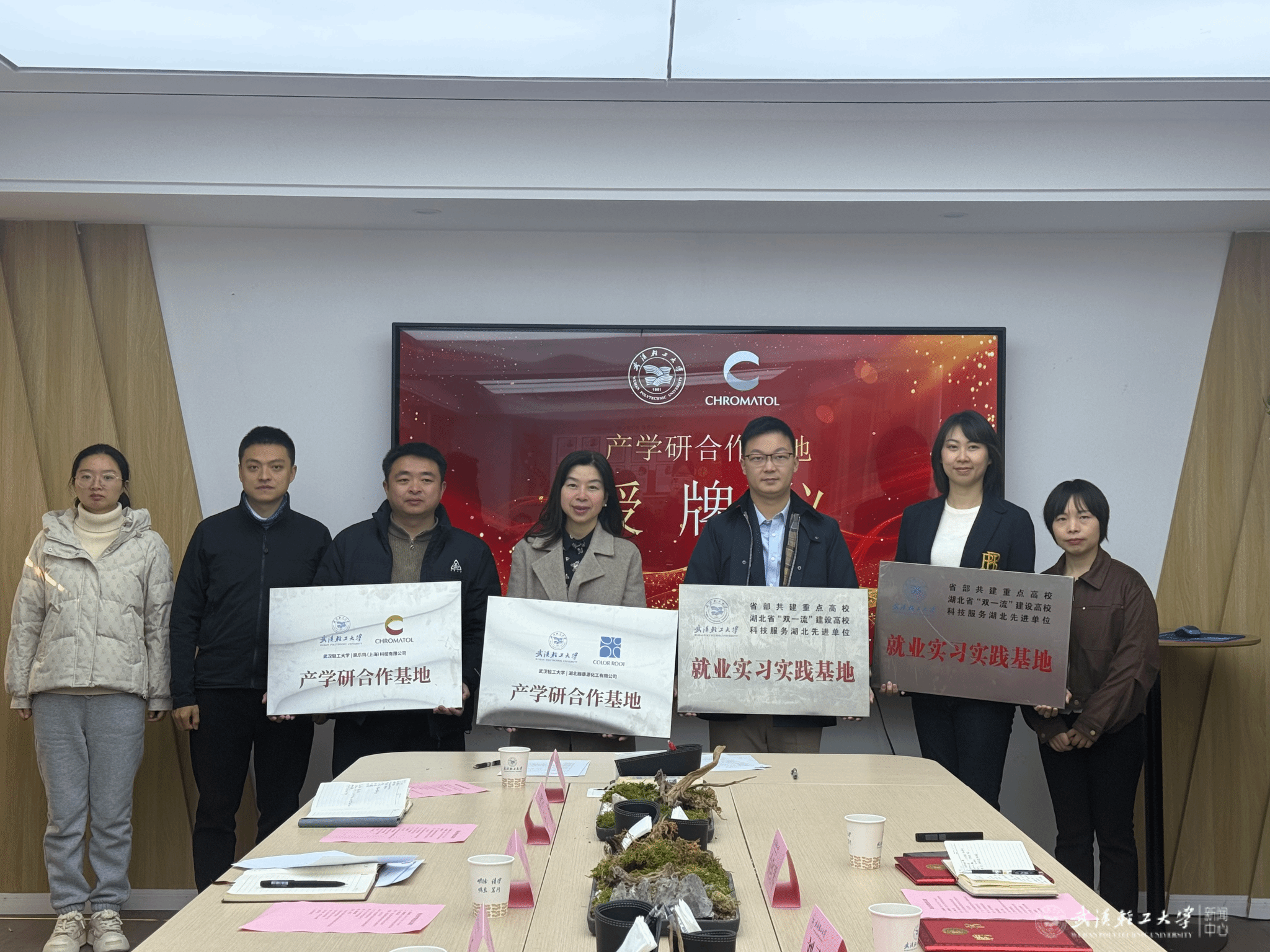 在全体与会人员的共同见证下,于雪与刘子轩代表双方签署了校企战略合作协议。随后的授牌环节,标志着双方合作从意向走向实质落地,正式构建起人才双向流动、理论与实践深度融合的校企协同育人实体平台。