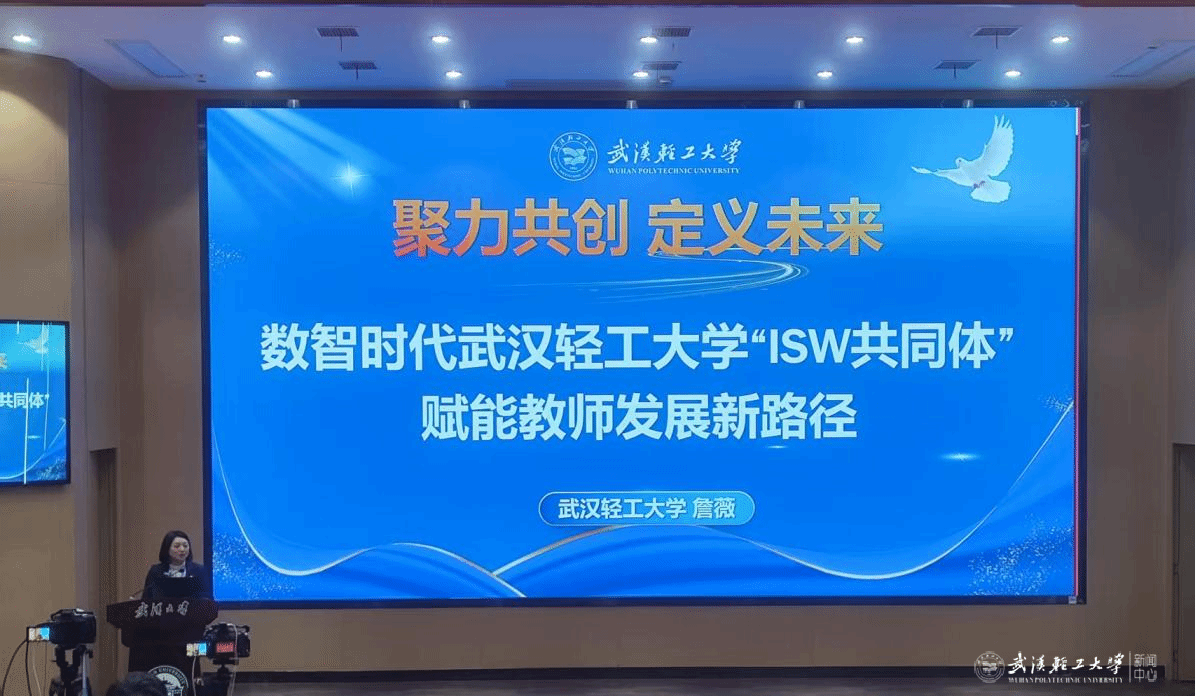 会上,我校教师发展中心代表以《聚力共创 定义未来——数智时代武汉轻工大学“ISW共同体”赋能教师发展新路径》为题作报告。报告从“系统化本土建构、数智化平台支撑、开放式生态辐射”三个维度,系统阐述了学校以“ISW教学技能工作坊”体系为核心、构建教师发展共同体的创新实践,详细介绍了相关举措取得的显著成效,引发与会代表广泛关注与高度肯定。
