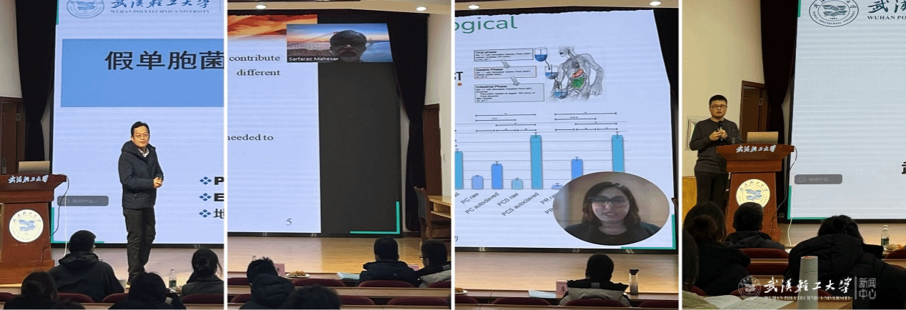 大会报告环节由生科学院院长助理吴菁主持,聚焦产业实际问题与解决方案。意大利那不勒斯费德里科二世大学Chiara Nitride副教授分享了对抗蛋白质原料中抗营养因子的策略;巴基斯坦信德大学Sarfaraz A. Mahesar副教授介绍了红外光谱分析反式脂肪酸的最新趋势;我校晁红军副教授揭示了污染物2,4-二甲基苯酚的微生物降解新途径,李龙杰副教授则展示了智能化男性健康诊疗装备的研发与产业化成果。