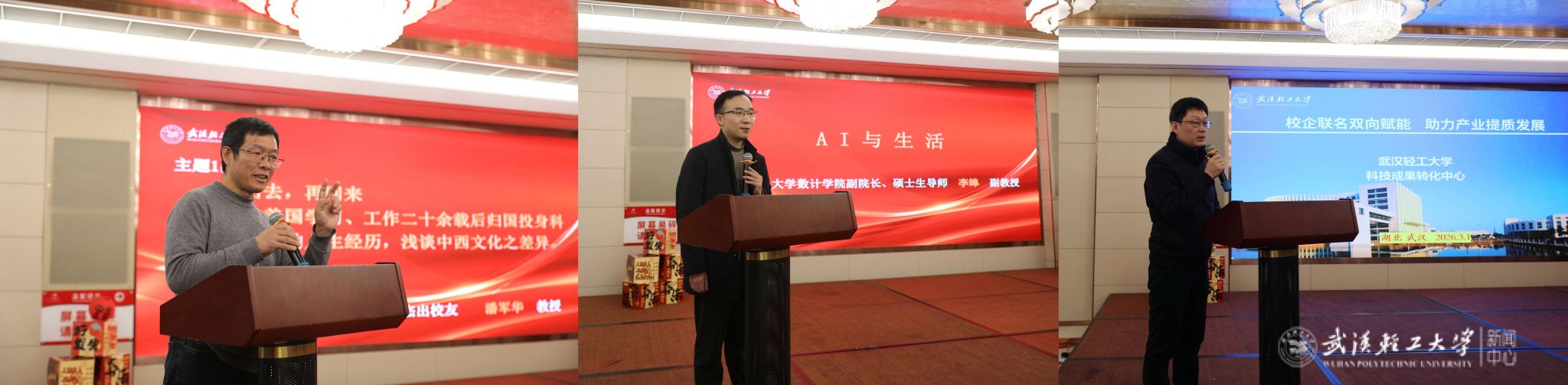 在致辞环节,食品学院党委书记黄继春代表两个学院,感谢校友对学院发展的关心支持,希望加强跨院交流、深化产学研合作,在“数字+食品”的赛道上携手并进。武汉校友会会长王升洪表示,校友会将始终坚守“服务校友、反哺母校”的初心,持续搭建交流合作平台,凝聚校友力量,助力母校与校友事业协同发展。