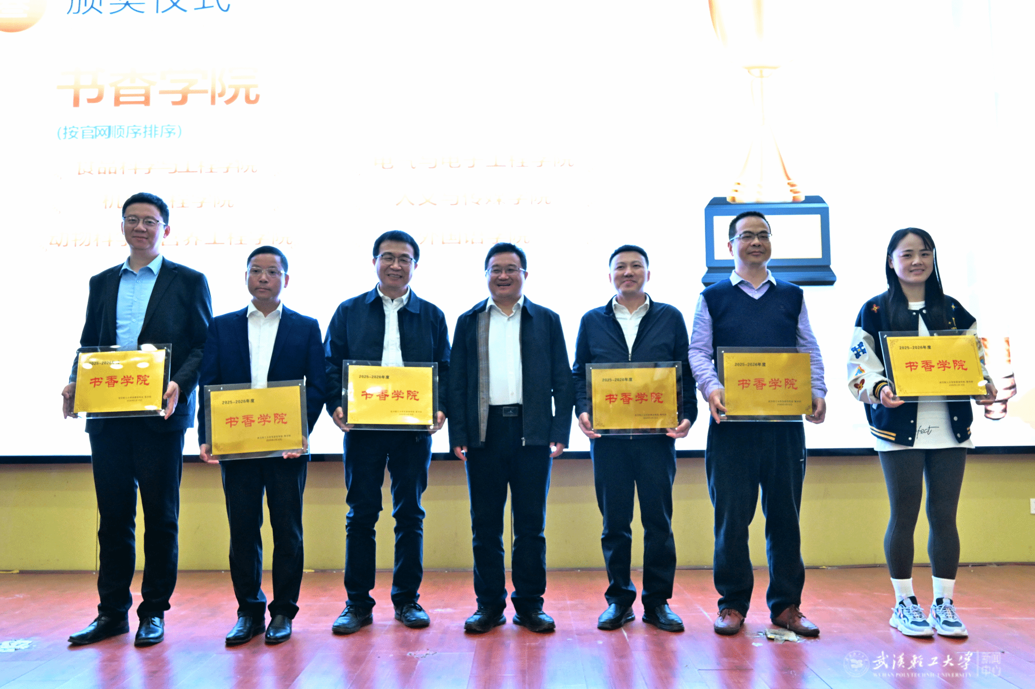 丁华锋代表学校党委和行政,对受到表彰的先进集体和个人表示热烈祝贺,向长期以来深耕阅读推广一线、默默奉献的图书馆工作人员,以及热爱阅读、践行阅读的全体师生,致以亲切的问候和衷心的感谢。他向全体师生提出三点希望:一是以书为友,让阅读成为一种生活习惯;二是以读践思,让阅读成为一种成长力量;三是以典为引,让书香成为校园鲜明标识。他强调,图书馆要发挥主阵地作用,丰富阅读资源、创新活动形式,打造特色阅读品牌;各学院和职能部门要协同联动,将书香建设与学风、学科、文化建设深度融合,搭建优质阅读交流平台;阅读社团要发挥纽带作用,带动更多师生参与阅读,共同营造“人人爱读书、处处飘书香”的浓厚校园文化氛围,让书香成为我校鲜明的办学特色。