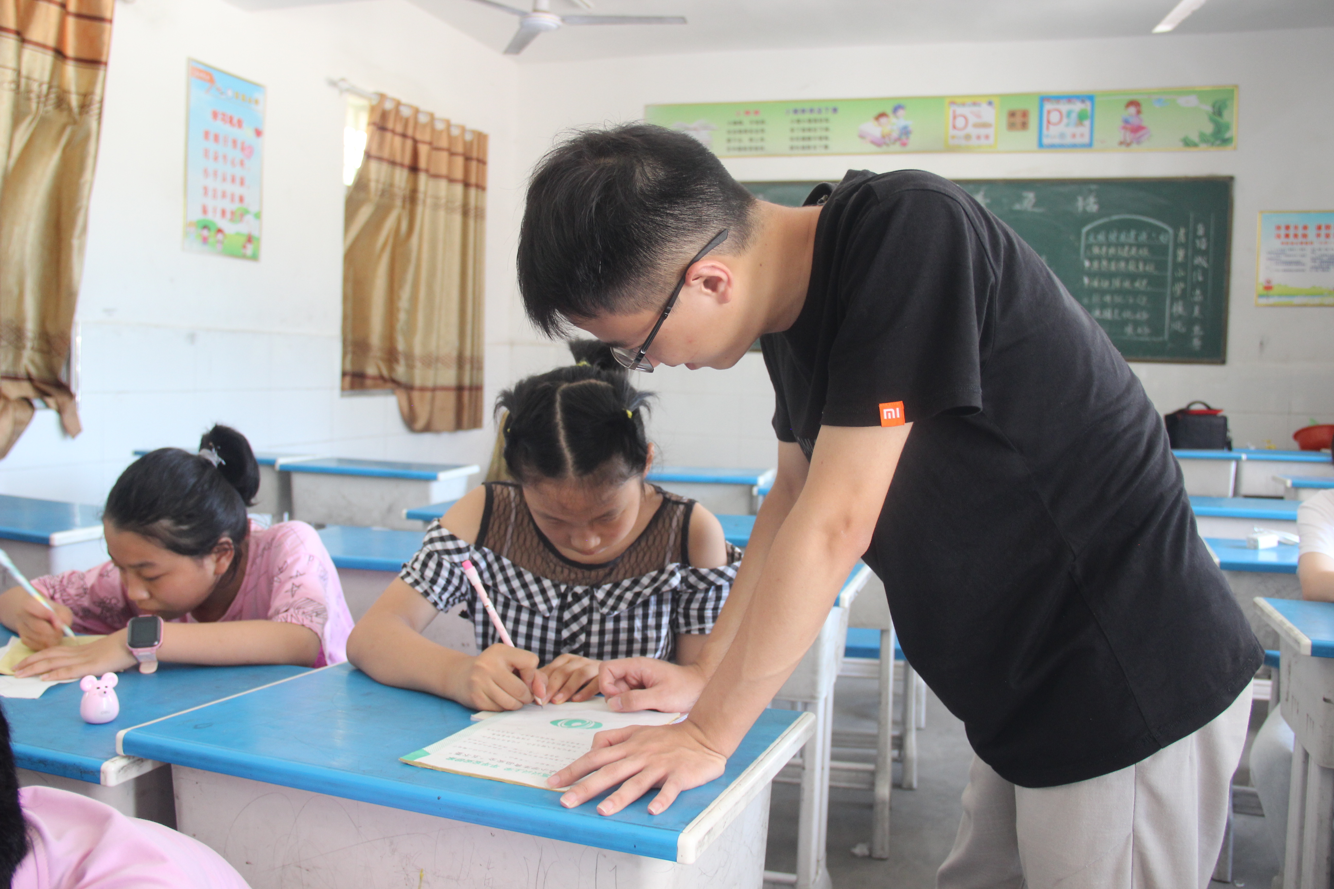 中国青年网襄阳7月19日电(通讯员 何立斯)2021年7月12日,武汉轻工大学化学与环境工程学院暑期“三下乡”社会实践服务团队“筑梦先锋队”为襄阳市襄州区龙王镇肖集小学的同学们开展了一堂主题为“书方正汉字,绘精彩人生”的硬笔书法课。团队成员以优秀的硬笔书法作品引入,讲述了硬笔书法的基本特点,强调了硬笔书法中基本笔画的书写要点。实践团队希望可以通过这堂书法课,激发孩子们对于书法的兴趣,在练习书法的过程中感受中国汉字的独特魅力,在陶冶情操的同时养成专注做事的好习惯。