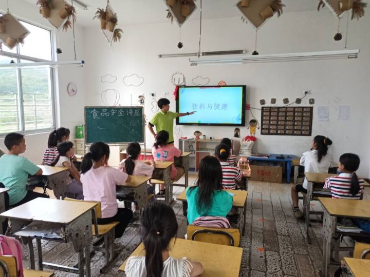在充分了解当地学生年龄与学习需求后,食品学院支教团成员为当地学生开展食品科普讲座、安全知识课程,点亮乡村教育课堂。课堂上,支教的老师们将教育“实”起来,把物理与化学的世界带到孩子们的眼前,并且结合食品学院的专业特色,为同学们开展了《食品营养安全科普讲座》、《食品化学小实验》等课程,课程设置灵活多样,着重引导孩子们放眼世界、探索未知。