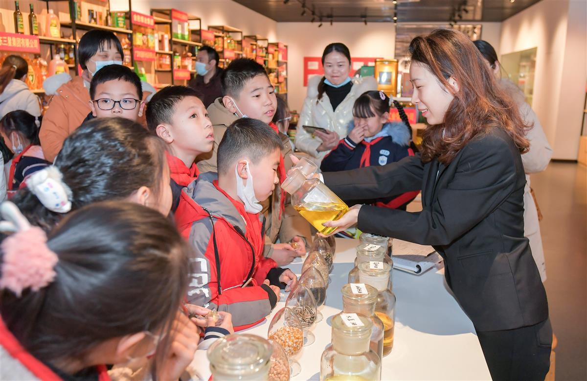 “其实古人并不是用‘油’字来称呼油脂的,他们称之为膏或脂。《礼记》中记载‘凝者为脂,释者为膏’,意为常温下呈固态的叫脂,呈液状的叫膏,也就是今天所说的油,两者统称为油脂……”1月26日,武汉轻工大学中国油脂博物馆的讲解员正为来自武汉市东西湖区愿景小学的观众讲解中国油脂历史。当天,该校近20名师生和家长通过“百校百馆”——湖北省“大思政课”实践教学平台预约,走进中国油脂博物馆开启了一场穿越时空之旅。