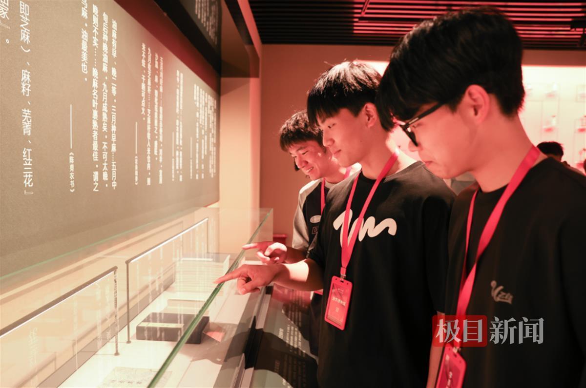 “我还是第一次见到古代的米呢!”2023级食品质量与安全专业的梁敏敏惊叹道。在展厅中央的展柜里,静静陈列着镇馆之宝——炭化稻米,吸引了众多目光。讲解员张远鹏为大家详细介绍:“展示区右边的5粒碳化稻米和10粒碳化粟,是从湖北省荆门市屈家岭文化遗址中心借展而来。屈家岭堪称中华文明起源的农耕圣地,该遗址出土了一批距今约5800年的碳化稻粒,和距今约5600年至5300年的碳化粟粒,经植物考古工作者研究证实,它们是长江中游地区目前发现最早的稻和粟遗存。”