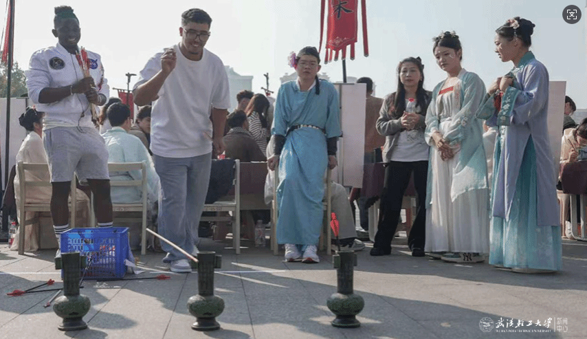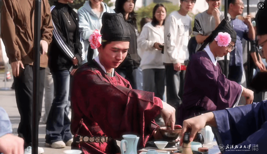 茶香氤氲,词韵悠扬。近日,以“风雅宋韵 梦回汴京”为主题的校园民俗文化节在武汉轻工大学拉开帷幕。师生们身着雅致宋服,体验投壶簪花之乐,品味七汤点茶之妙,在沉浸式的互动中完成了一场与历史的对话。