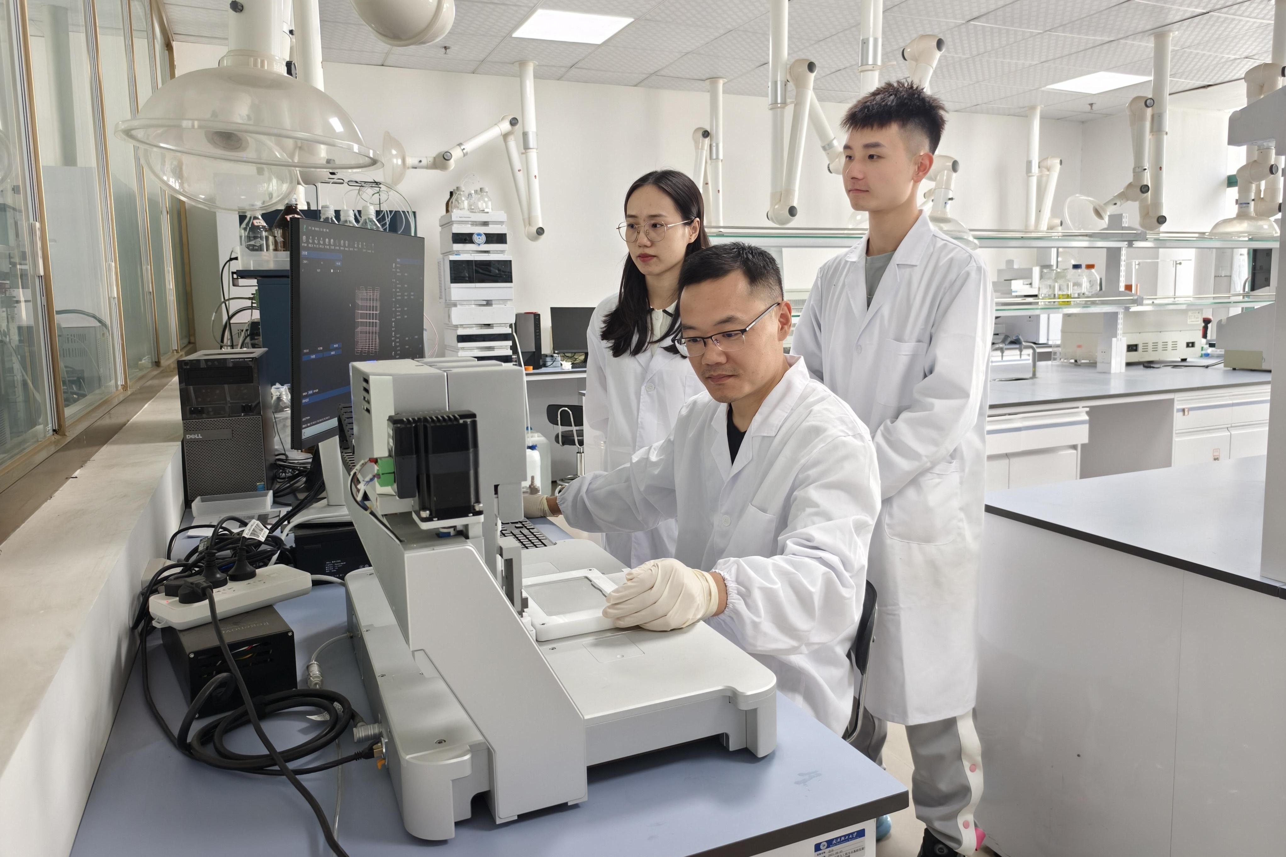 武汉轻工大学食品科学与工程学院教授易阳指导团队开展藕纤维3D打印材料研究。受访单位供图