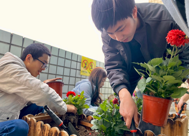 在绿植种植活动中,师生们分组领取树苗、花种与园艺工具,在园艺师和生命科学与技术学院志愿者的指导下,翻土、栽种、浇水、挂牌,亲手为校园增添新绿。劳动过后,大家移步室内,投入到微景观DIY创作中,以苔藓为地、砂石为径、小摆件点缀其间,充分发挥创意,将春日的盎然生机浓缩进方寸玻璃瓶中。现场笑语不断,泥土的清香与专注的神情交织成春日校园里最生动的画面。