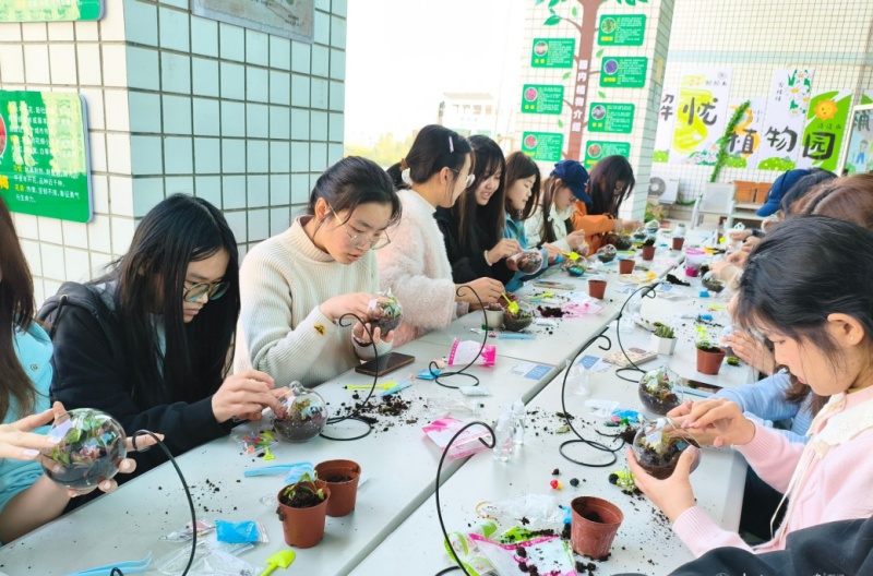 “看着零散的材料变成精致灵动的微型景观,我感到前所未有的成就感和满足,也在和草木相处中收获了平静与力量。”来自2025级生物工程类专业的令狐玉同学分享道。同级的制药工程专业王雅馨则感慨:“在植树节亲手种下一抹绿意,既学到了专业知识,也为校园添了彩,更重要的是在创作中释放了压力,给心灵充了电。”
