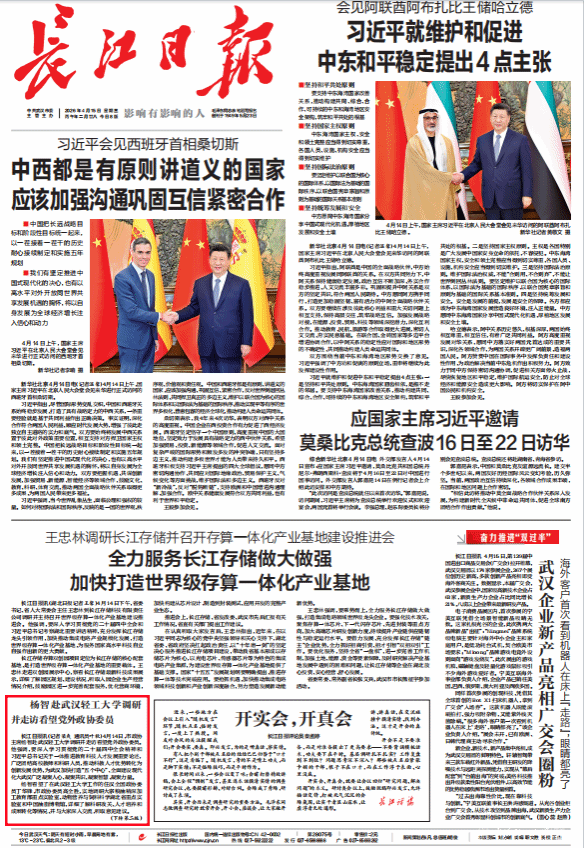 长江日报讯(记者梁爽 通讯员叶秋)4月14日,市政协主席杨智赴武汉轻工大学调研并走访看望党外政协委员。他强调,要深入学习贯彻党的二十届四中全会精神和习近平总书记关于一体推进教育科技人才发展重要论述,广泛团结高校教师和科研人员,推动科教人才优势转化为创新发展优势,为武汉加快打造“五个中心”、全面建设现代化大武汉广泛凝聚人心、凝聚共识、凝聚智慧、凝聚力量。