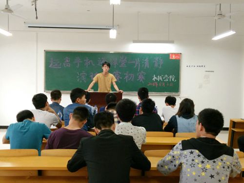 为提高课堂效率,营造良好学风,6月3日下午,机械学院“远离手机,还课堂一片清静”演讲比赛初赛在机械楼210教室顺利进行。来自14级和15级的共18位选手参赛,7位高年级同学担任本次比赛的评委。